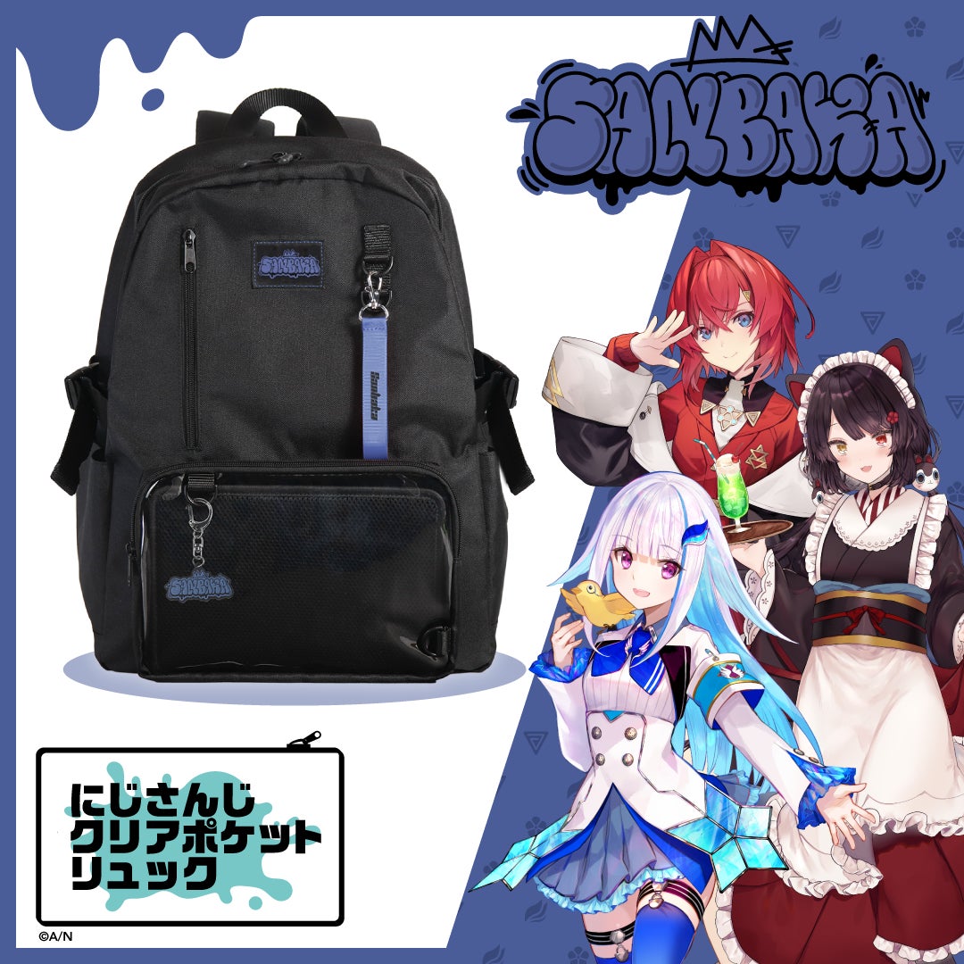 にじさんじから、フレン・E・ルスタリオ、星川サラ、さんばか(アンジュ・カトリーナ、戌亥とこ、リゼ・ヘルエスタ)、SMC組(葉加瀬冬雪、夜見れな、加賀美ハヤト)、Idios(小清水透、獅子堂あかり、鏑木ろこ、五十嵐梨花、石神のぞみ、ソフィア・ヴァレンタイン、倉持めると)をイメージしたデザインの「にじさんじクリアポケットリュック」が販売決定!