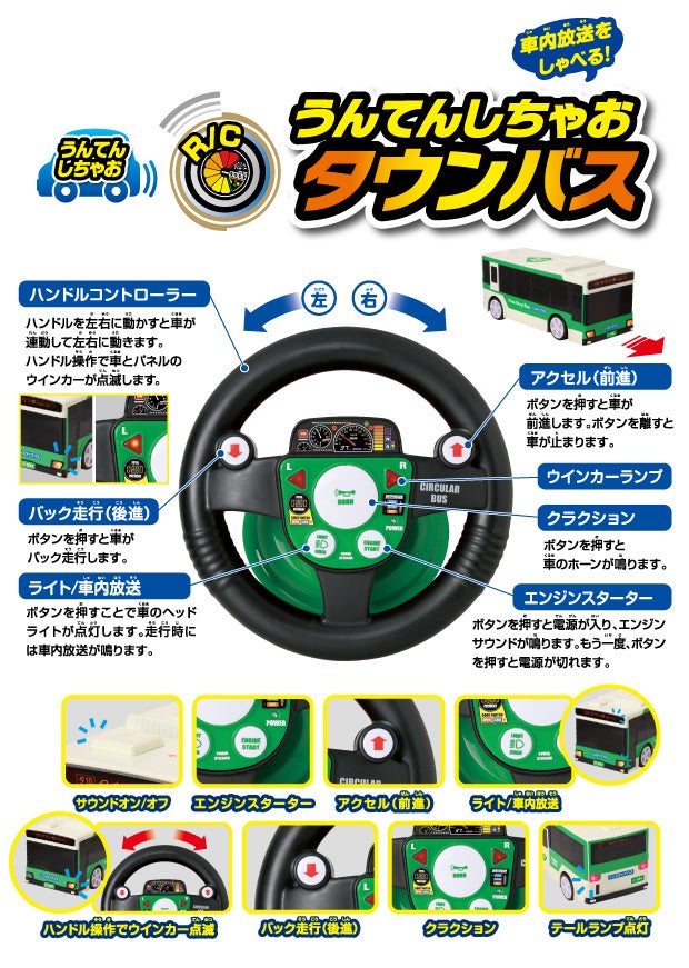 ハンドル操作で運転遊びが楽しめる!人気の“R/C うんてんしちゃお”シリーズ第4弾が登場!「R/C うんてんしちゃお タウンバス」2022年10月29日(土)より発売開始!(税込6,578円)