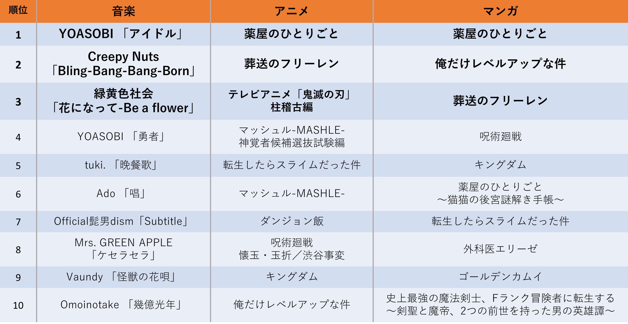 【auスマートパスプレミアム】音楽・アニメ・マンガの人気ランキングを大発表!「2024年上半期エンタメBEST10」