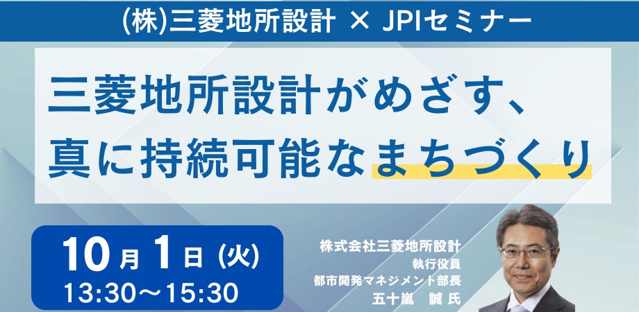JPI(日本計画研究所)は、株式会社三菱地所設計 執行役員 都市開発マネジメント部長 五十嵐 誠 氏を招聘し、持続可能なまちづくりに向けた取り組みと今後の展開について詳説いただくセミナーを開催します。
