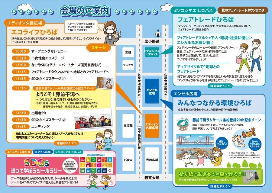 会場は「フェアトレードひろば」「みんなつながる環境ひろば」「エコライフひろば」に大きく3つに分かれます。「海と日本プロジェクト・CHANGE FOR THE BLUE」ブースはエコライフひろばに出展します!