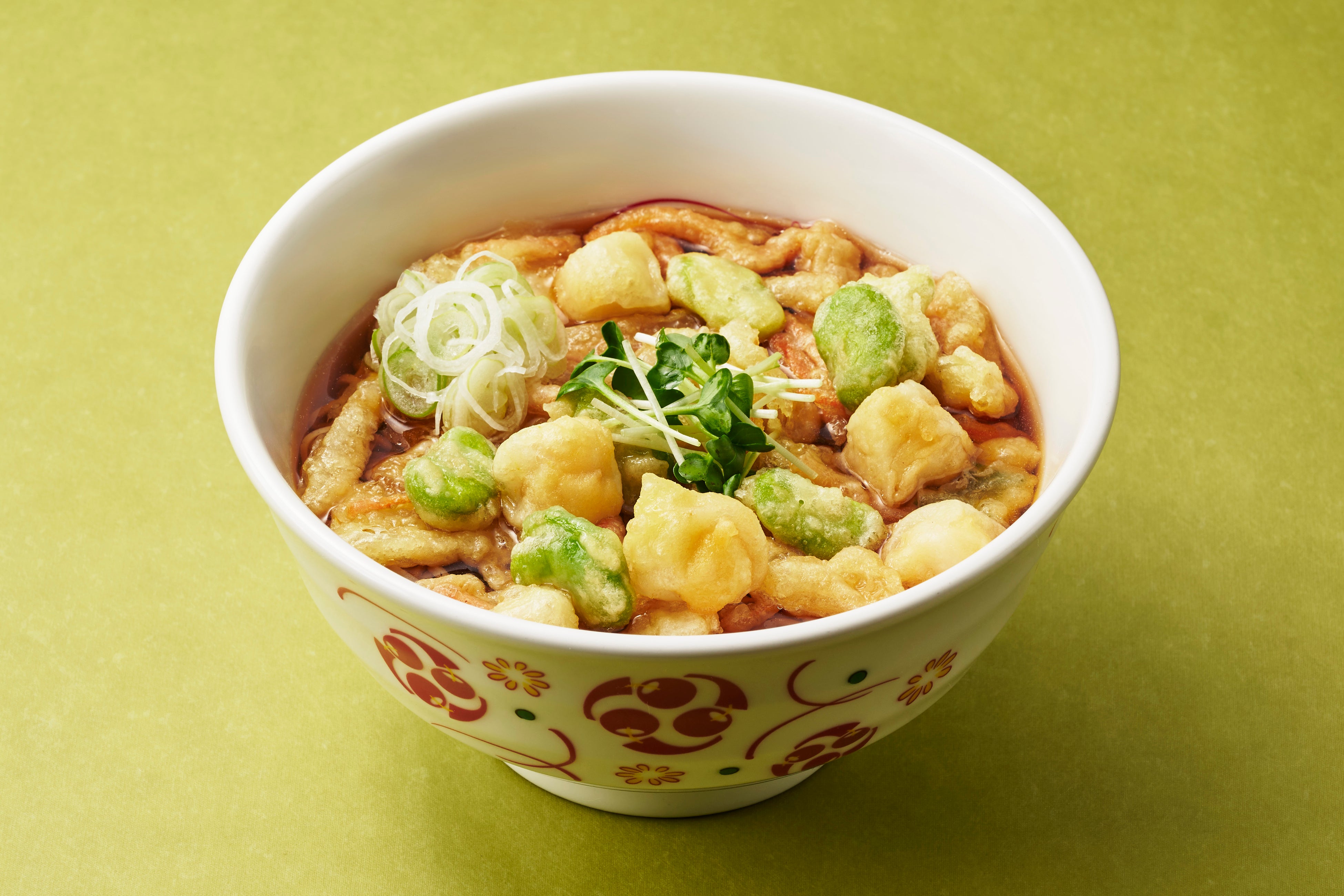 つゆに浸った天ぷらから溶け出す海鮮のコクと、そら豆の爽やかな風味がそばを引き立てます。この時期しか味わえない、彩り豊かな一杯をぜひご賞味ください。