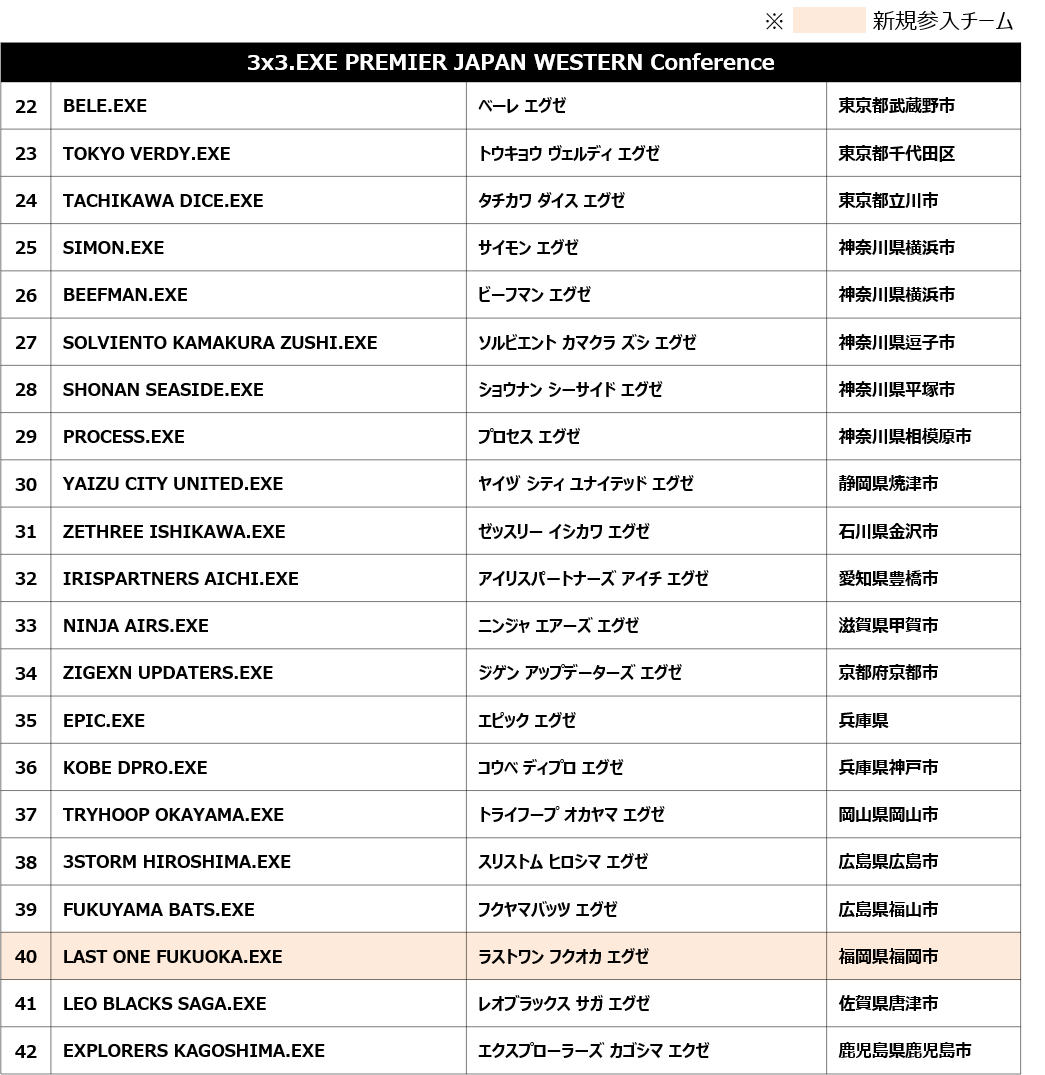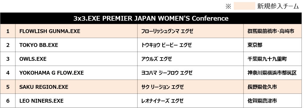 ※3x3.EXE PREMIER JAPAN からはカンファレンス上位2チームが出場権利を獲得。