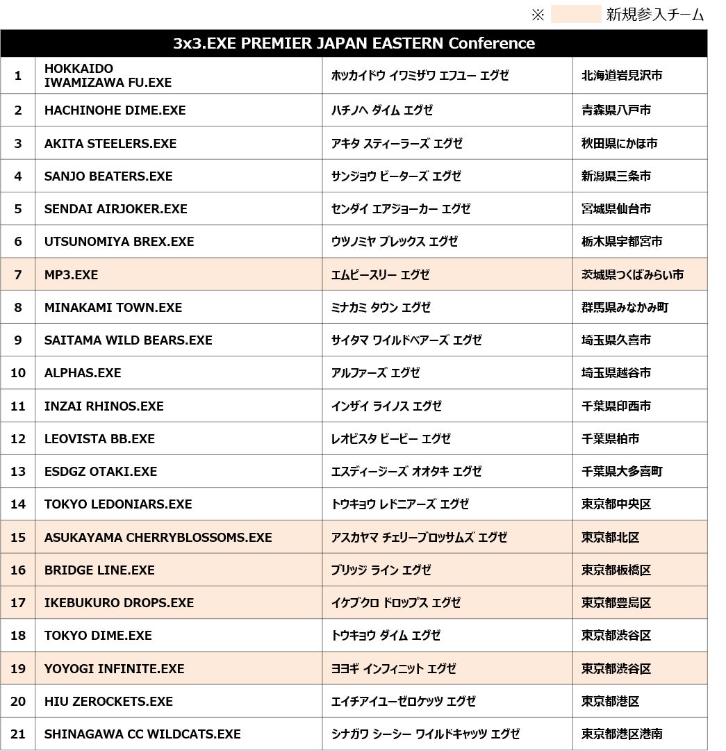 ※3x3.EXE PREMIER JAPAN からは各カンファレンス上位7チーム計14チームが出場権利を獲得。