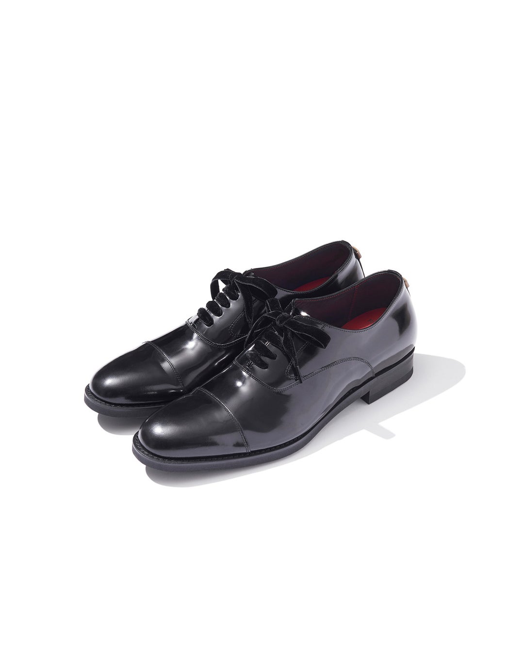 また、インソールやライニングステッチにはエレガントなポイントレッドを配色し、シューレースは平紐と遊び心あるベルベットリボンの2本セット。よりドレスアップしたフォーマルな装いのシーンでも着用いただけます。