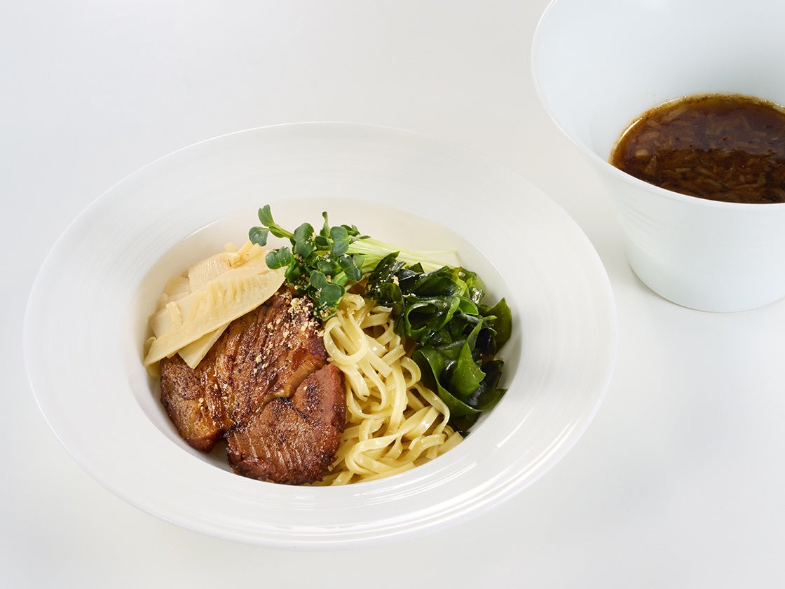 かつお出汁を効かせた特製醤油ダレに熱海で長年愛されるコマツ屋製麺の平打ち麺をあわせた「特製かつお醤油の炙りチャーシューつけ麺」、野菜の優しい旨みに特製ラー油を添えた「中華風 黒毛和牛のビーフカレー」、蒸しパンが付いたボリューム満点の「お箸でほぐれる極厚ポークステーキ」をご用意しました。