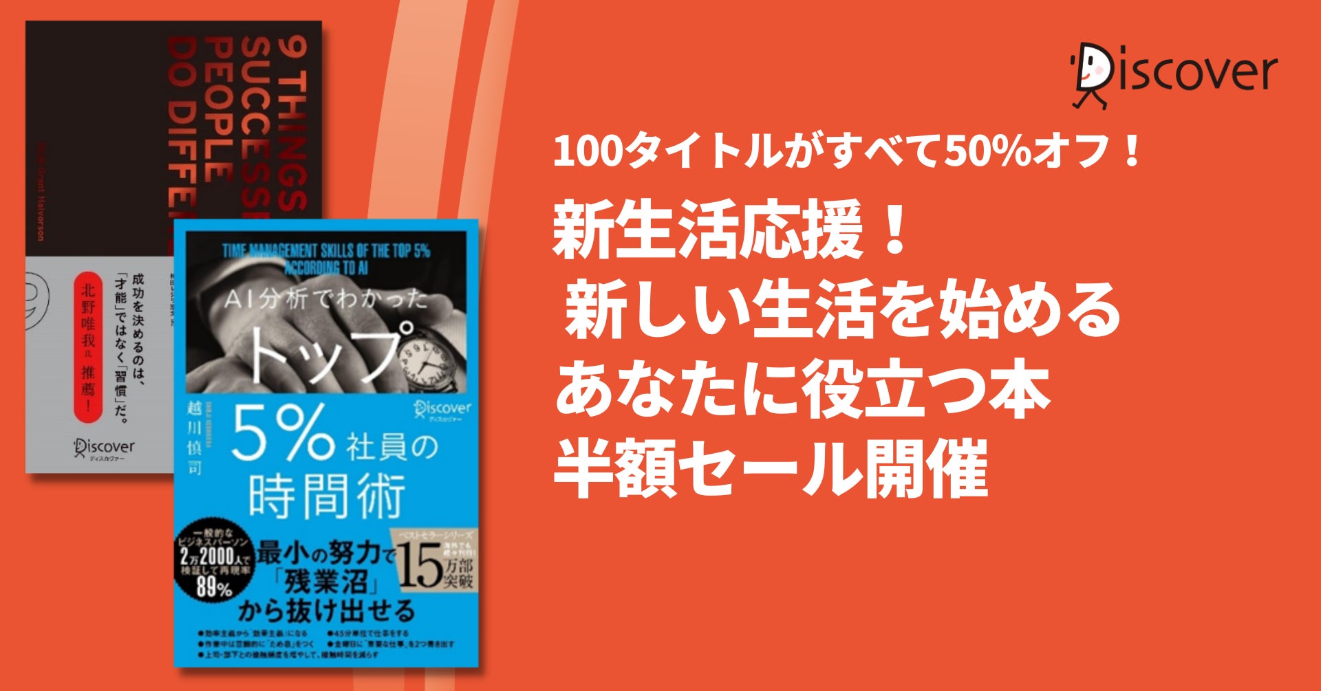 株式会社ディスカヴァー・トゥエンティワン(本社:東京都千代田区、取締役社長:谷口奈緒美)は2023年4月1日から4月28日の28日間、DMM.comをはじめとしたネット書店11書店で、ディスカヴァーの電子書籍100タイトルが半額になるセールを開催します。