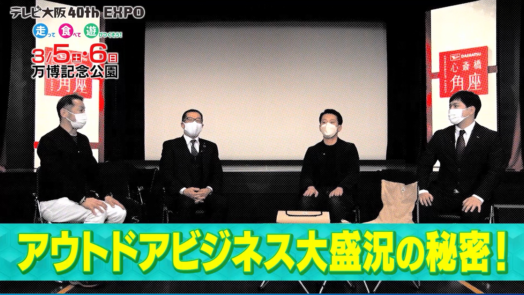 テレビ大阪は、2月26日(土)午前11時30分から、特別番組「テレビ大阪40周年エキスポの楽しみ方」を放します。MCは森脇健児とアウトドア大好き芸人のくわがた心。そして、コメンテーターとしてアメリカで成功を収めた大阪出身の起業家・戸村光も登場。アウトドアビジネスが大盛況の舞台裏を独自の視点で解説してくれます
