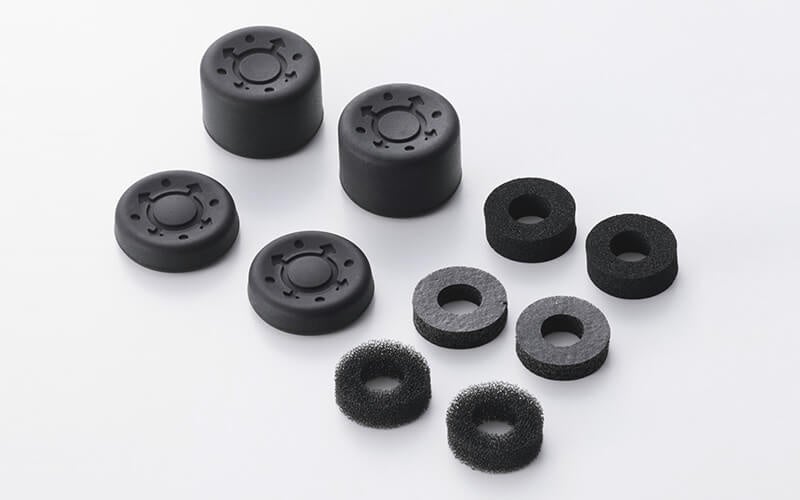 スティックに取り付けるエイムリングは、押し込みの硬さが異なるハード・ノーマル・ソフトの3種類で、繊細な操作を実現します。