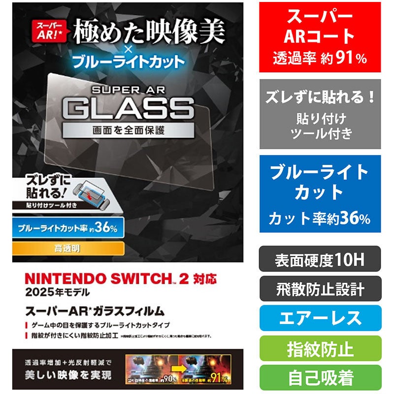 ガラス特有のなめらかな指滑りを実現する高透明タイプのNintendo Switch(TM) 2用画面保護ガラスフィルムです。
