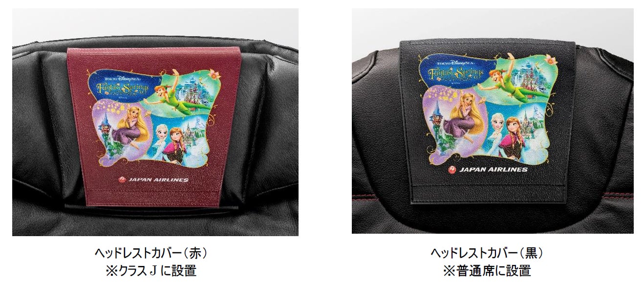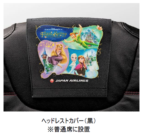 今回の機体では、アレンデール城やラプンツェルの塔、フック船長のジョリー・ロジャー号などそれぞれのエリアの象徴的な場所を背景に、アナやエルサ、ラプンツェル、ピーターパンが描かれ、魔法の泉が導くディズニーファンタジーの世界を表現した機体となっています。さらに、ヘッドレストカバーや紙コップなどにも特別なデザインが施されます。特別塗装機「JAL Fantastic Journey Express」でファンタジースプリングスの世界観に包まれた空の旅をお楽しみください。