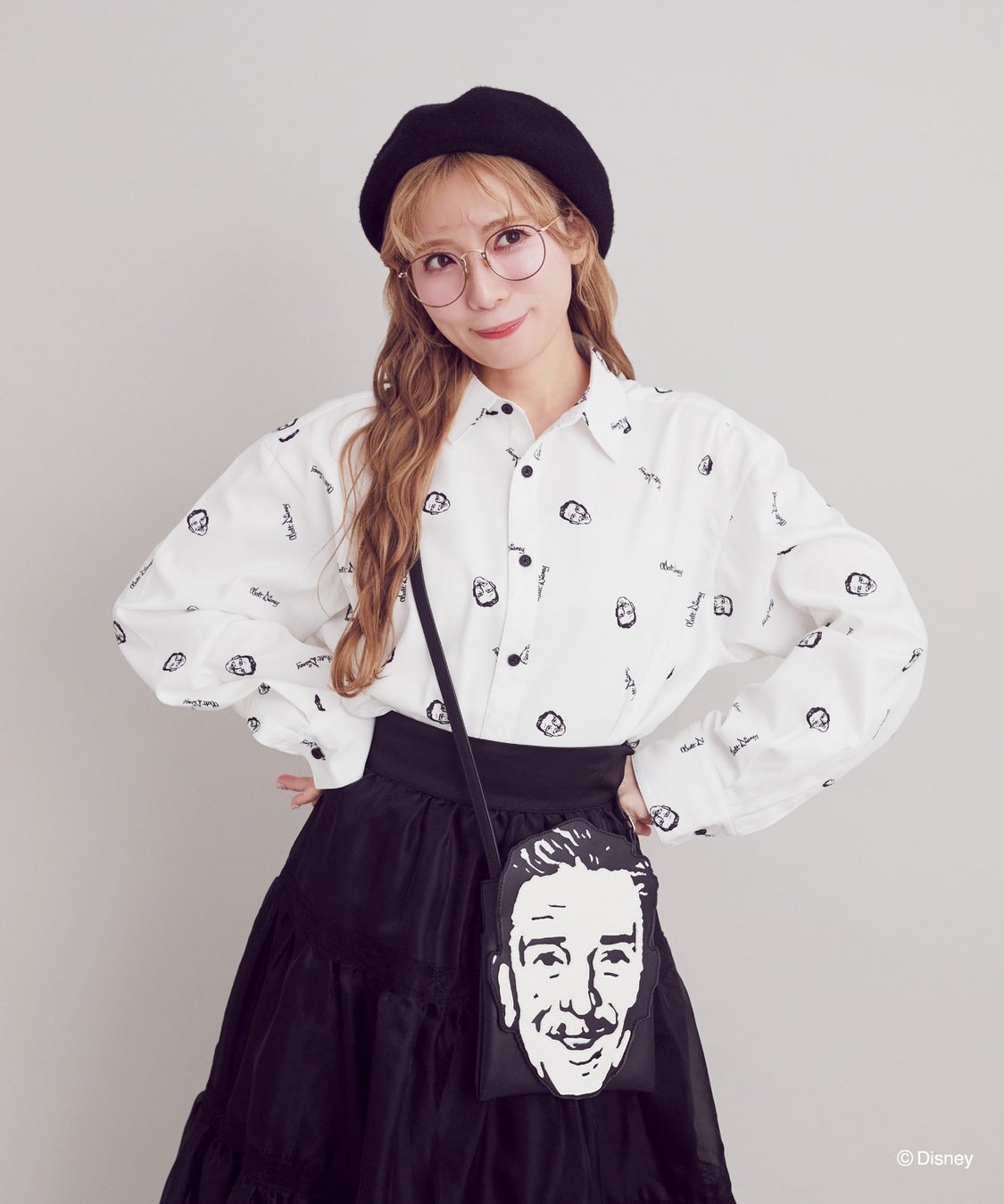 フェイクレザーのショルダーバッグは、「ウォルト・ディズニー」のフェイスアートを繊細なカットと刺繍で大胆に表現。ここでしか手に入らない、ディズニーファン必見の特別感あふれるデザインに仕上げました。