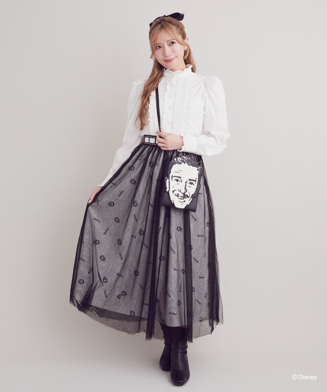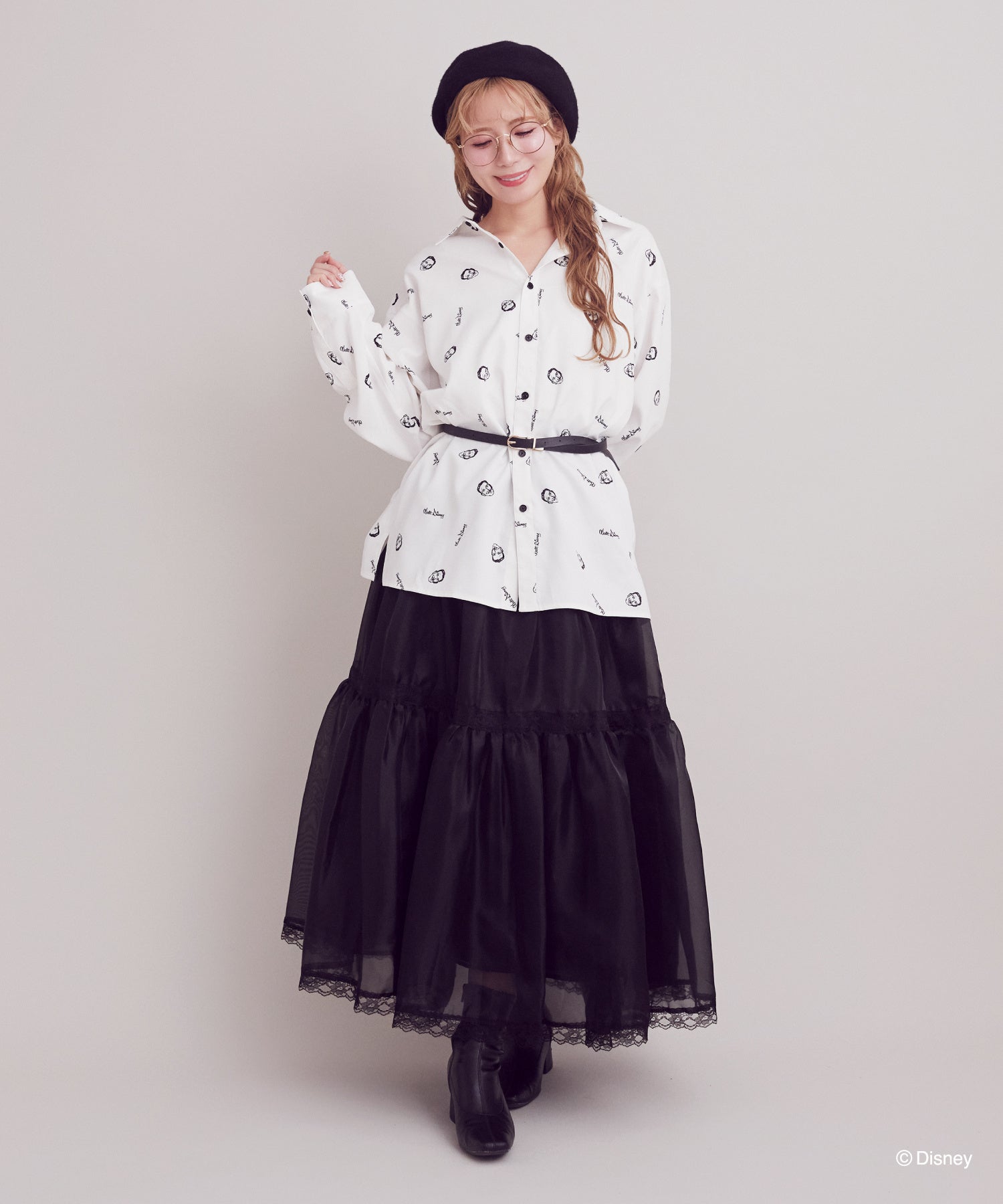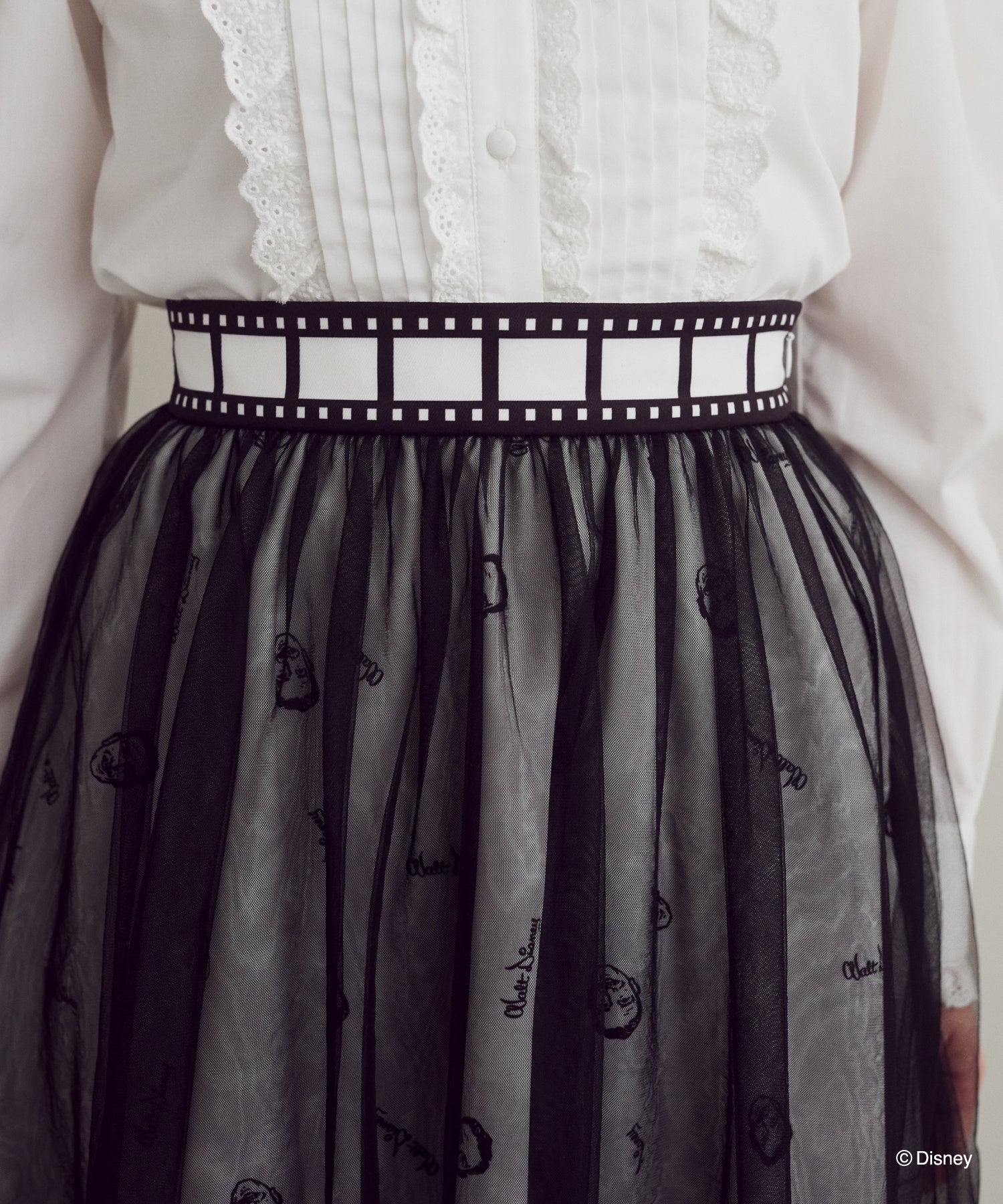 また、フェイスアートとシグネチャーロゴをプリントした総柄アイテムもラインアップ。ふわっとしたチュールを重ねたスカートには、映画フィルムをイメージした遊び心あるディテールをウエスト部分に採用。スカートとセットで着用することで、ワンピースのような着こなしが楽しめるシャツもご用意いたしました。ユニセックスサイズのシャツは、パートナーや友達とのお揃いコーディネートにもおすすめです。