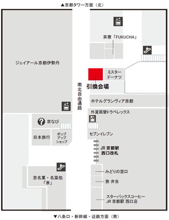 [引換場所] 京都駅ビル2F 南北自由通路 北側スペース 「ミスタードーナツ」横 特設会場