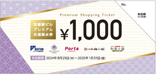 1,000円分のプレミアムが付いたお得な商品券ですので、ぜひこの機会にお買い求めいただき、京都駅ビルおよび京都駅前でのご利用をお待ちしております。