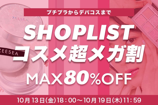 CROOZ SHOPLIST株式会社(本社:東京都渋谷区、代表取締役社長:仲佐 義規)が運営する、ファッション通販サイト『SHOPLIST.com by CROOZ』(以下、SHOPLIST)にて、プチプラからデパコスまで約20,000点以上のコスメアイテムがお手頃価格で購入できる特別セール『SHOPLIST コスメ超メガ割』を、2023年10月13日(金)18:00から10月19日(木)11:59までの7日間開催することをお知らせいたします。