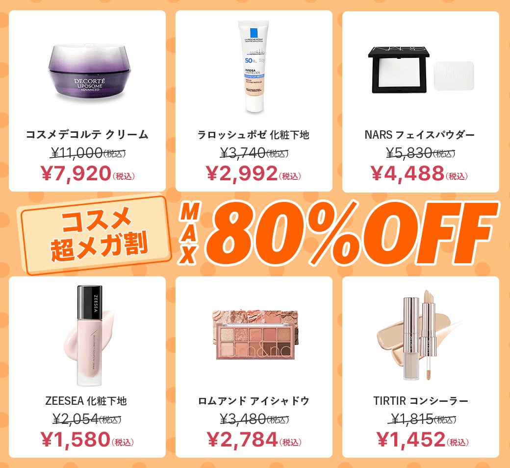 企画①:コスメ・スキンケア商品がMAX80%OFFとなるセールを実施