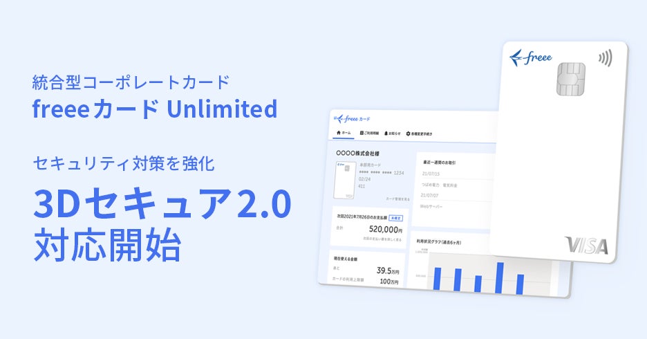freee finance lab株式会社(本社:東京都品川区、CEO:小村充広)が提供する、法人を対象とした企業成長を支援するための統合型コーポレートカード「freeeカード Unlimited」においてセキュリティ対策強化のための3Dセキュア2.0の対応を開始しました。