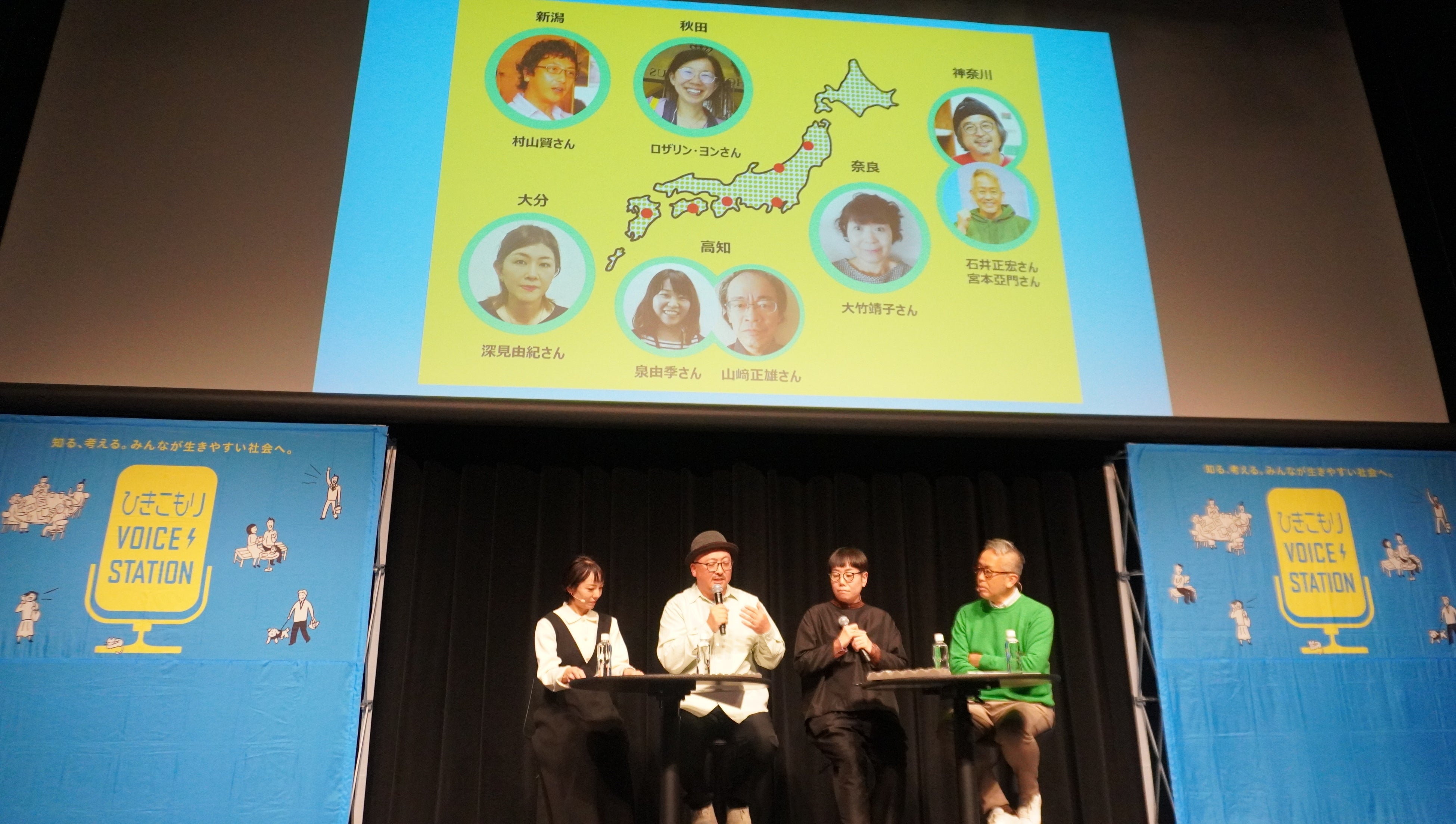 イベント後半は、VOICE STATION事務局メンバーで主にイベントのパネルトークやワークショップを担当する東善仁さんと山森彩さんとともに、神奈川、高知、秋田、新潟、奈良、大分の6都市で開催した「ひきこもりVOICE STATION全国キャラバン」を振り返りました。