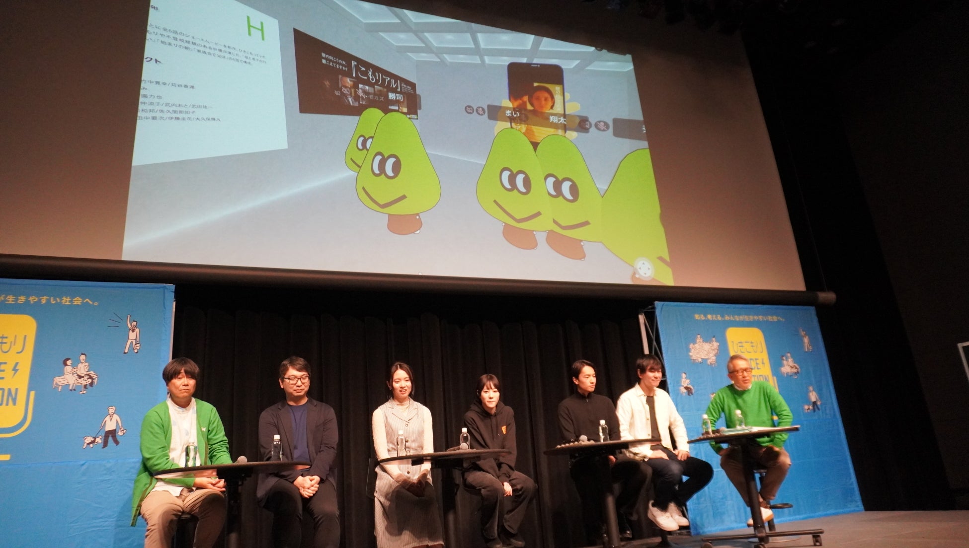 会場では、ひきこもりの経験談を基にしたショートドラマ「こもリアル」全6話のダイジェストを上映し、ドラマを監修した宮本さんが、監督の山田英治さんと6人の俳優、エピソードを提供した経験者からそれぞれの思いを引き出しました。