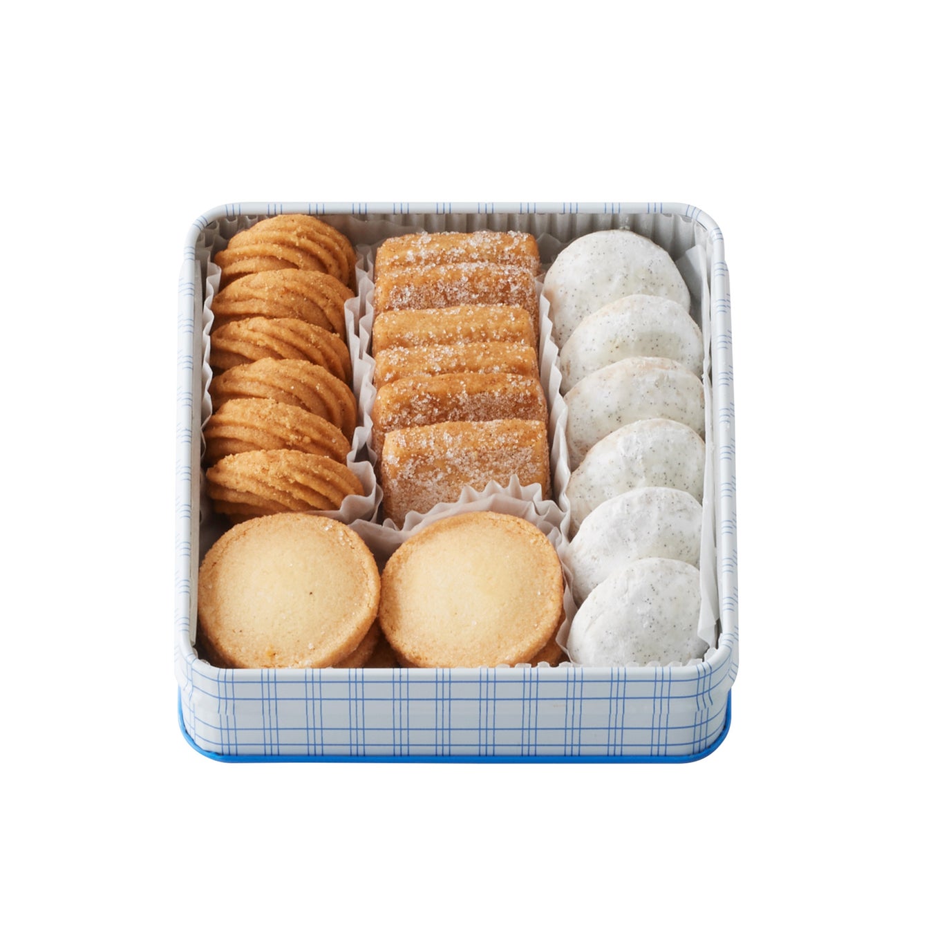 バニラの多彩な魅力を4種類のクッキーで表現しました。オリジナルデザインの四角い缶に入った、数量限定のクッキー缶です。