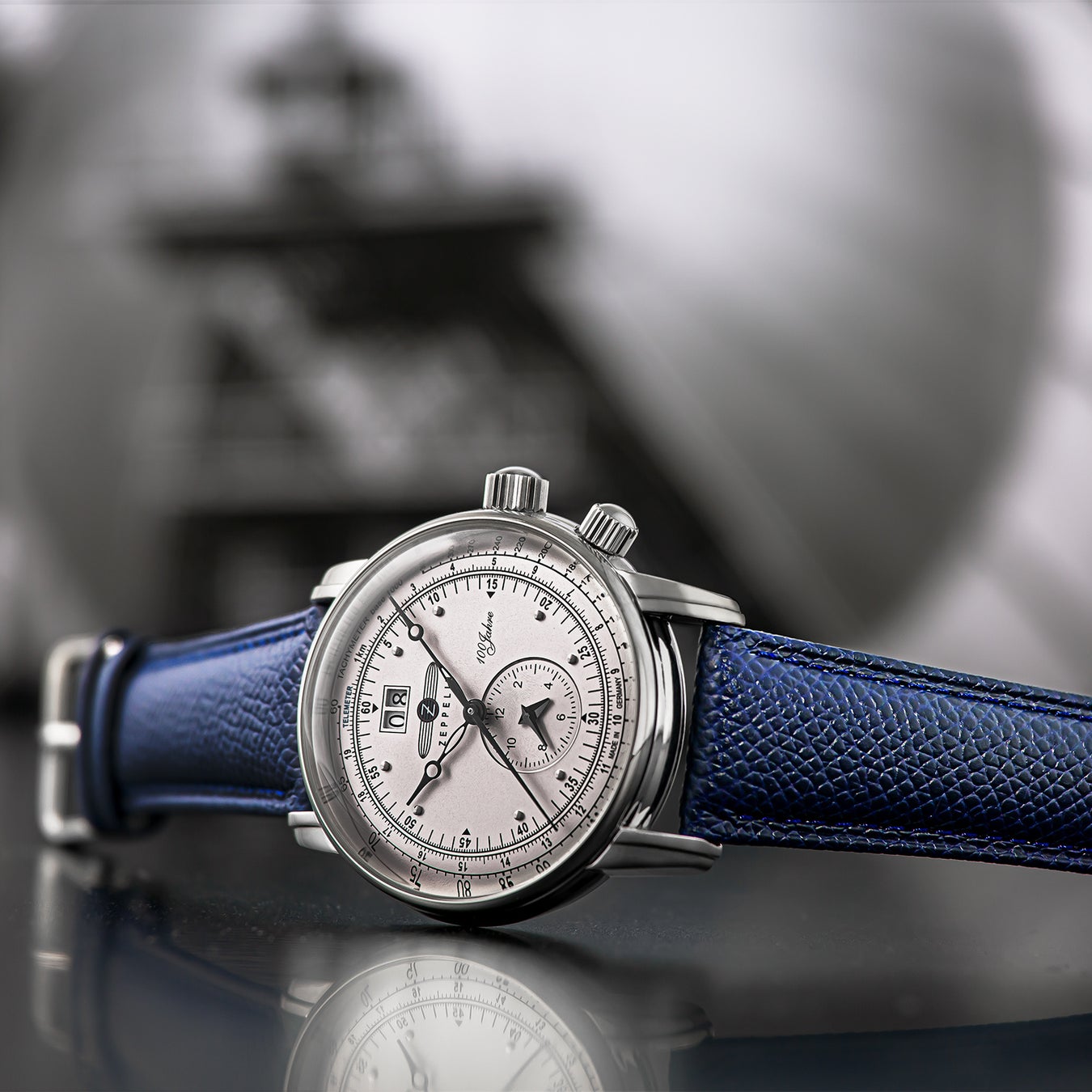 「100周年記念シリーズ デュアルタイムビッグデイト WEINHEIMERコレクション」は、腕時計「ツェッペリン」の人気シリーズ「100周年記念シリーズデュアルタイムビッグデイト」をベースに、世界的に有名な名門タンナー「ワインハイマー」社製の高品質レザーから制作されたベルトを一体化させた腕時計です。