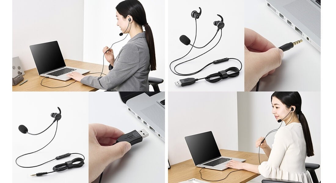 ラインアップは片耳タイプと両耳タイプがあり、それぞれに4極ミニプラグ仕様とUSB-A仕様をご用意。手元で音量調整やミュート操作ができる便利なコントローラーも搭載するほか、マイクはフレキシブルアーム式で、息によるポップノイズを軽減するウィンドスクリーンが付属しています。4極ミニプラグ仕様には、3極ミニプラグ×2(マイク×1、ヘッドホン×1)への変換ケーブルが付属しており、4極ミニプラグ非対応のパソコンでも使用可能です。