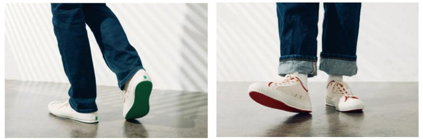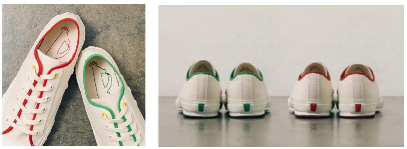 第1弾となる今回は国内老舗メーカーの協力により、高品質な素材・製法を活かしたシンプルなデザインの中に、「じゃがりこ」らしい遊び心を加えた国産スニーカーです。カラーはサラダ(緑)とチーズ(赤)の2色展開で、男女問わずお楽しみいただけます。