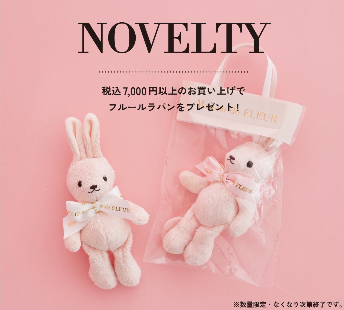 さらに、POPUP SHOPにて税込5,000円以上のお買上でラッピングの無料サービス、税込7,000円以上で「フルールラパン」の限定ぬいぐるみをプレゼントいたします。