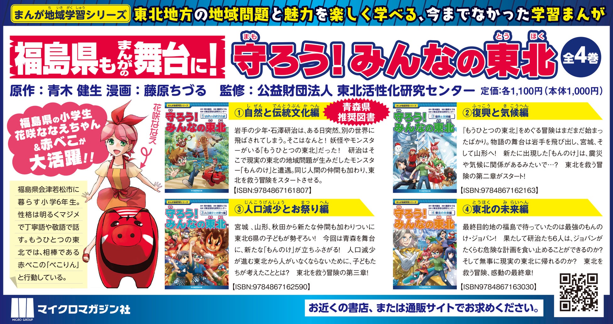 マイクロマガジン社(東京都中央区)は、まんが地域学習シリーズ『守ろう!みんなの東北』を8月21日の福島民友に掲載いたしました。