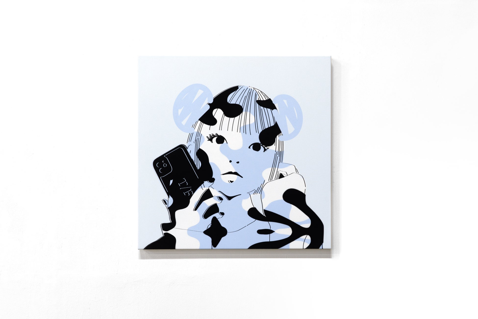 「SELFY」は、SNS時代における“現代の肖像画”としての新たなあり方を提示するアートシリーズです。SNSが日常化した現代、私たちの「自己」は、他者の視線と承認を前提に構築される存在へと変化しました。セルフィー(自撮り)はその象徴であり、理想化された自分を演出し、他者からの評価によって自己を確認するためのツールのようでもあります。本シリーズは、実在の人物ではなく、匿名性の高いキャラクターや加工されたようなビジュアルを通して、自己の記号化や消費を表現しています。かつての肖像画が「個の本質」を描こうとしたのに対し、「SELFY」は「社会が求める自己像」を描き出します。山口はこの作品群を通じて、「私たちは本当に“自分自身”を生きているのか?」という根源的な問いを投げかけます。