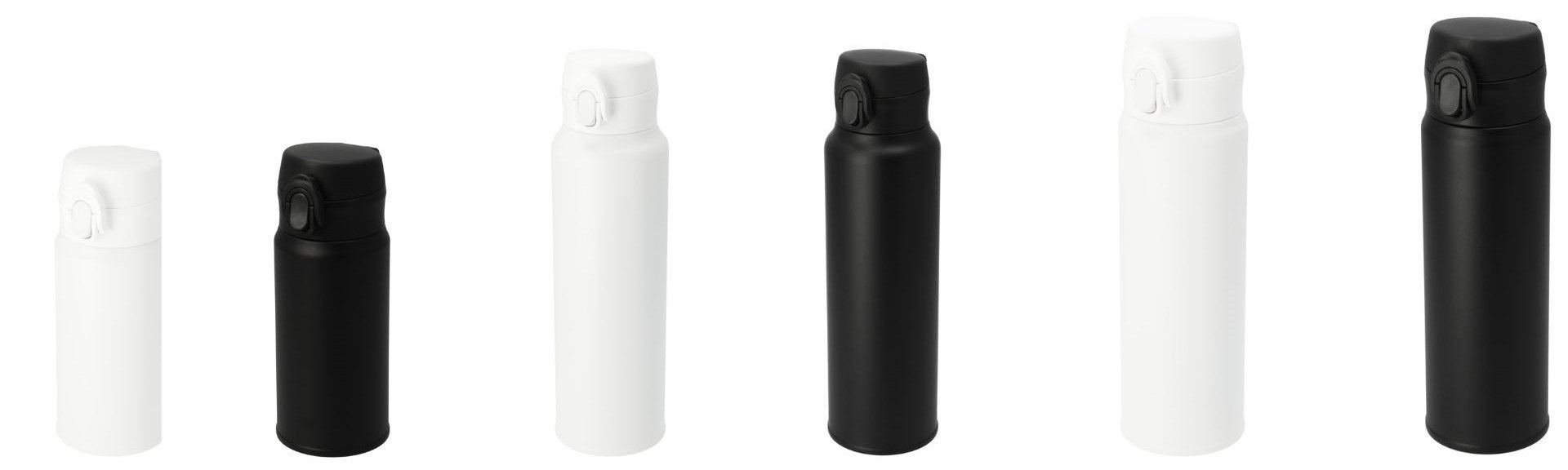 カラーはホワイト・ブラックの2色、容量は360ml・500ml・800mlの3サイズ展開です。お好みに合わせてお選びください。