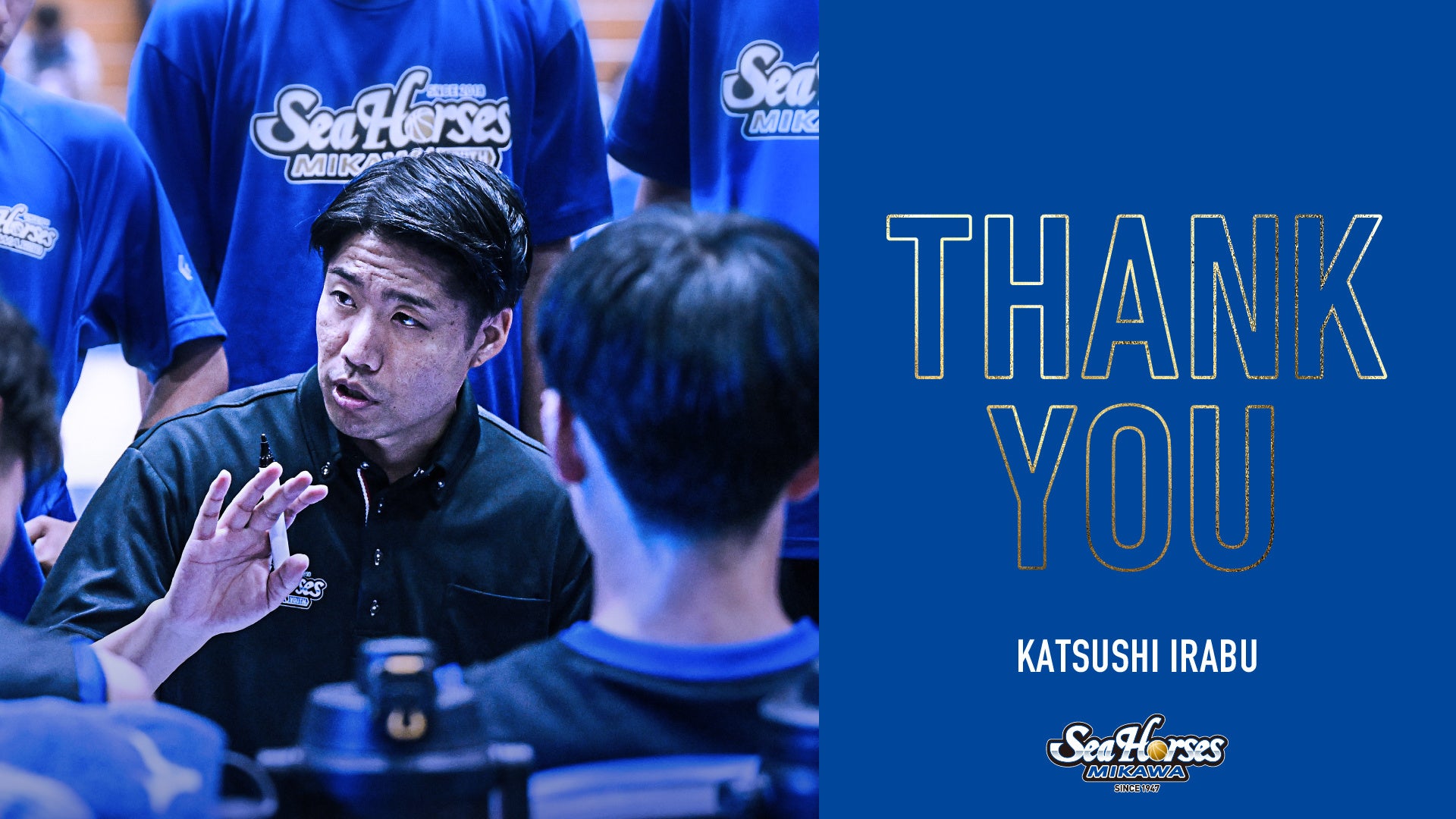 この度、シーホース三河U15伊良部勝志ヘッドコーチが契約満了により退団することをお知らせいたします。