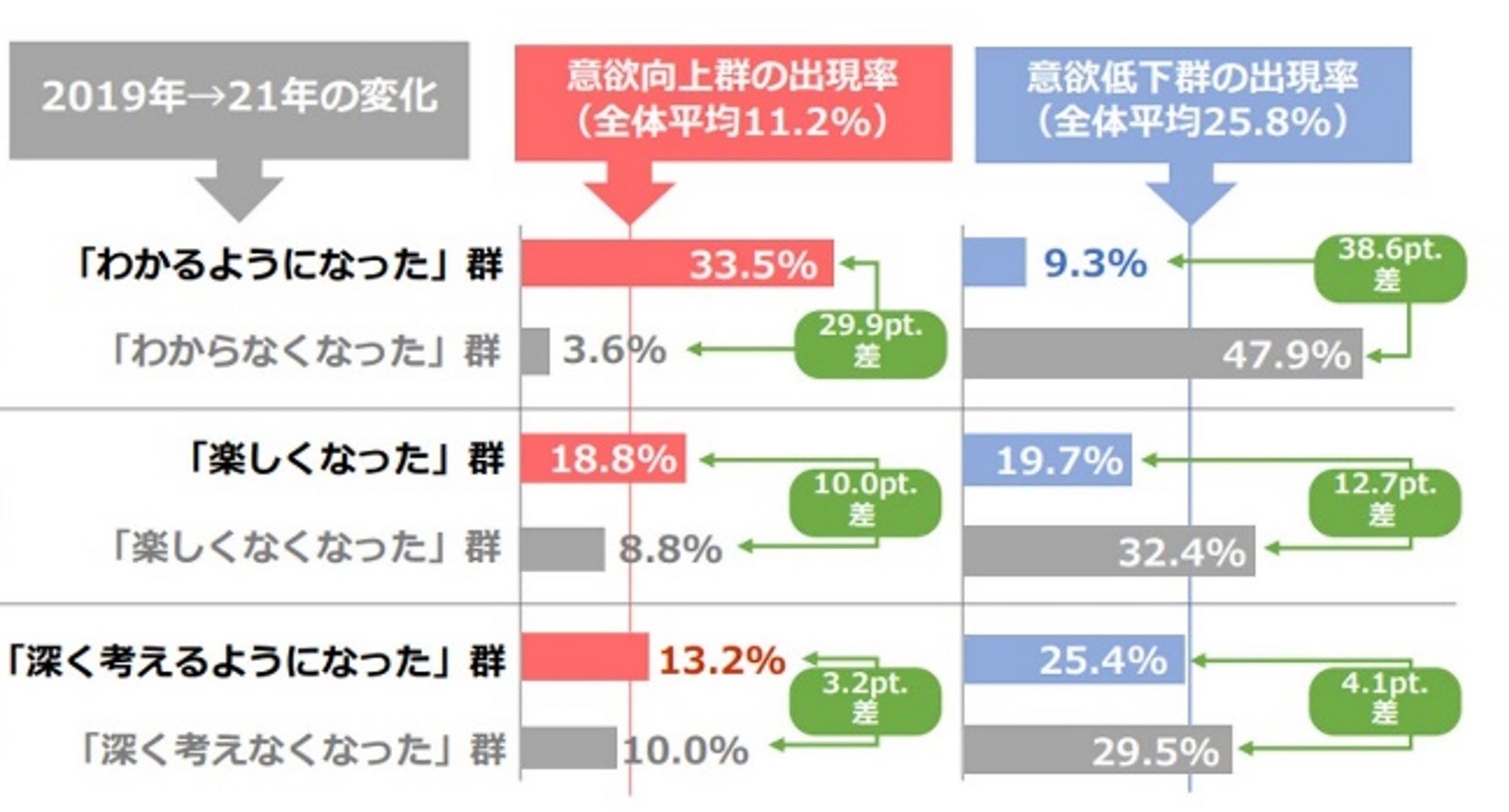 「わかるようになった」「楽しくなった」「深く考えるようになった」ことが要因で学習意欲が向上することが明らかに