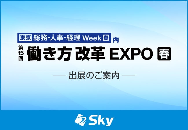 Sky株式会社は、6月25日(水)~27日(金)に東京ビッグサイトで開催される、生成AI・DXなど業務改革のための展示会「第15回 働き方改革 EXPO」に出展いたします。