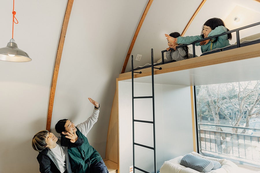 キャンプ、ロッジ、キャビンの3タイプからなる宿泊施設と、私たちの感性をちょっとだけくすぐるコンテンツが待っています。