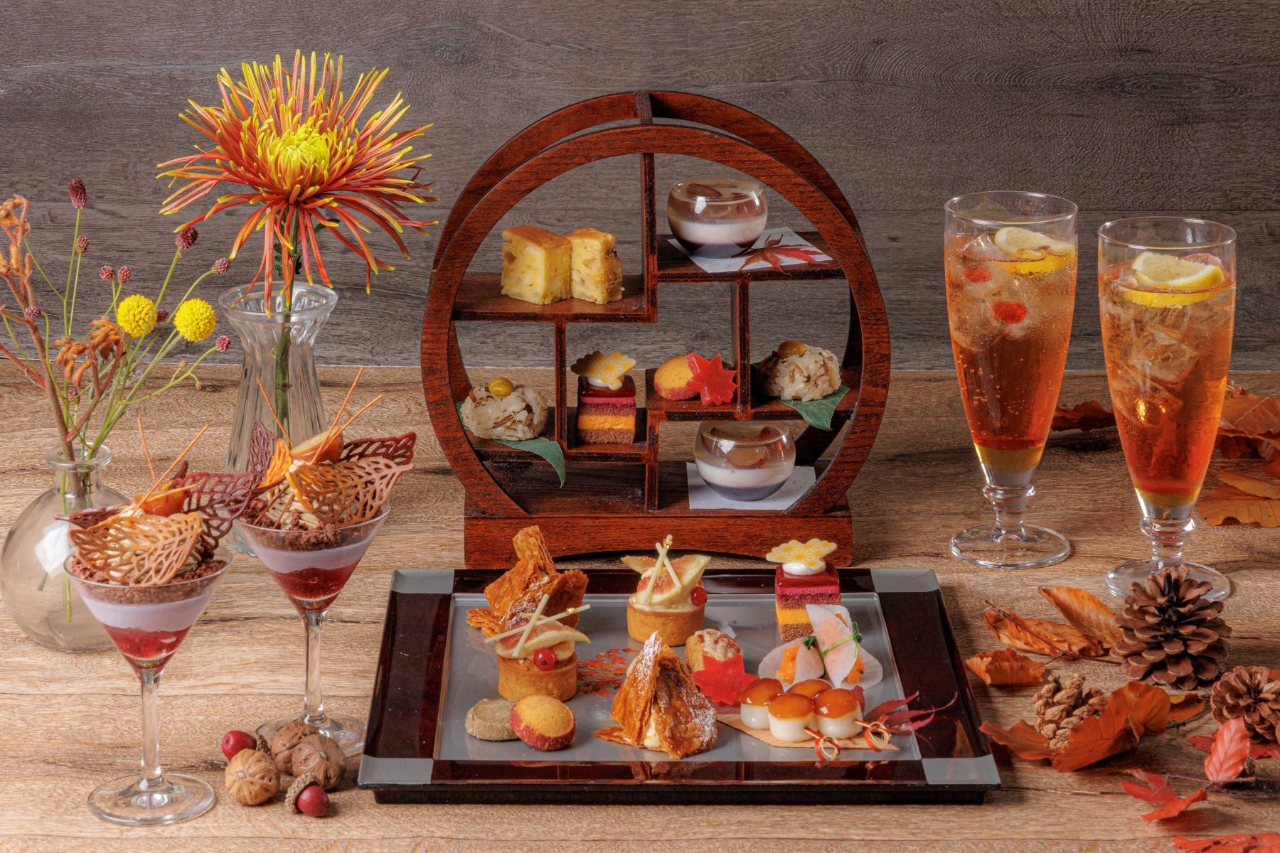 【京都】古都京都の美しい紅葉をイメージした目でも舌でも楽しめる和洋スイーツが登場秋食材を使用した「カシスと和栗のモンブランパフェ」付き『はんなり紅葉アフタヌーンティー』