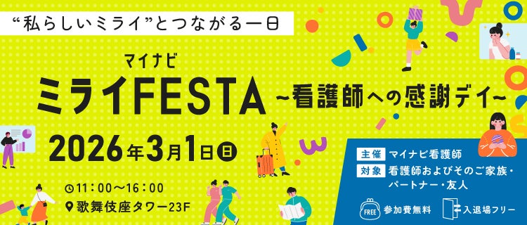 ネイティブスピーカーと回数無制限のオンライン英会話サービス「ネイティブキャンプ英会話」を展開する株式会社ネイティブキャンプ(東京都渋谷区 代表取締役:谷川国洋)は、2026年3月1日(日)に開催される看護師向けイベント「マイナビ ミライFESTA」(主催:『マイナビ看護師』)に協賛を決定いたしました。