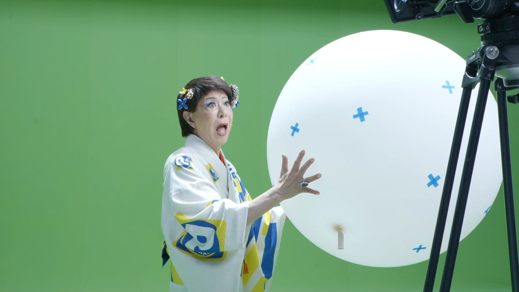 臨んでくださった美川さん。シーソーの上でバランスを取るシーンでは安定感を表現するために繰り返しリハーサルが行われました。また、大きな風船を受け取る場面では、風船の軌道やキャッチするタイミングにこだわることで、完成度を高める工夫が施されました。