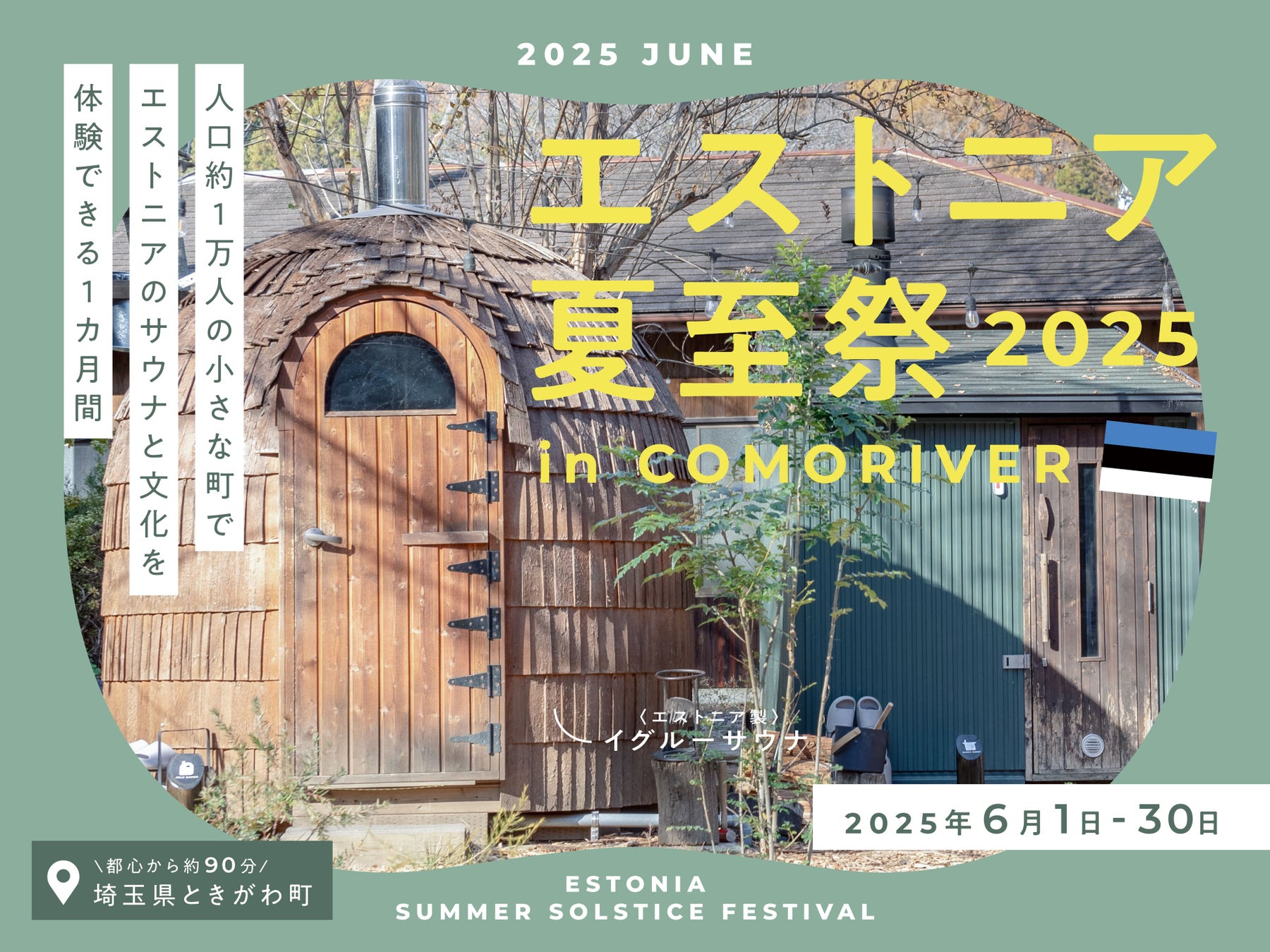 株式会社温泉道場(埼玉県比企郡ときがわ町、代表取締役 山崎寿樹)が運営するCOMORIVER(埼玉県比企郡ときがわ町、以下 コモリバ)は、2025年6月1日から6月30日の期間中、エストニア大使館・エストニア政府観光局協力によるイベント「エストニア夏至祭」を開催します。