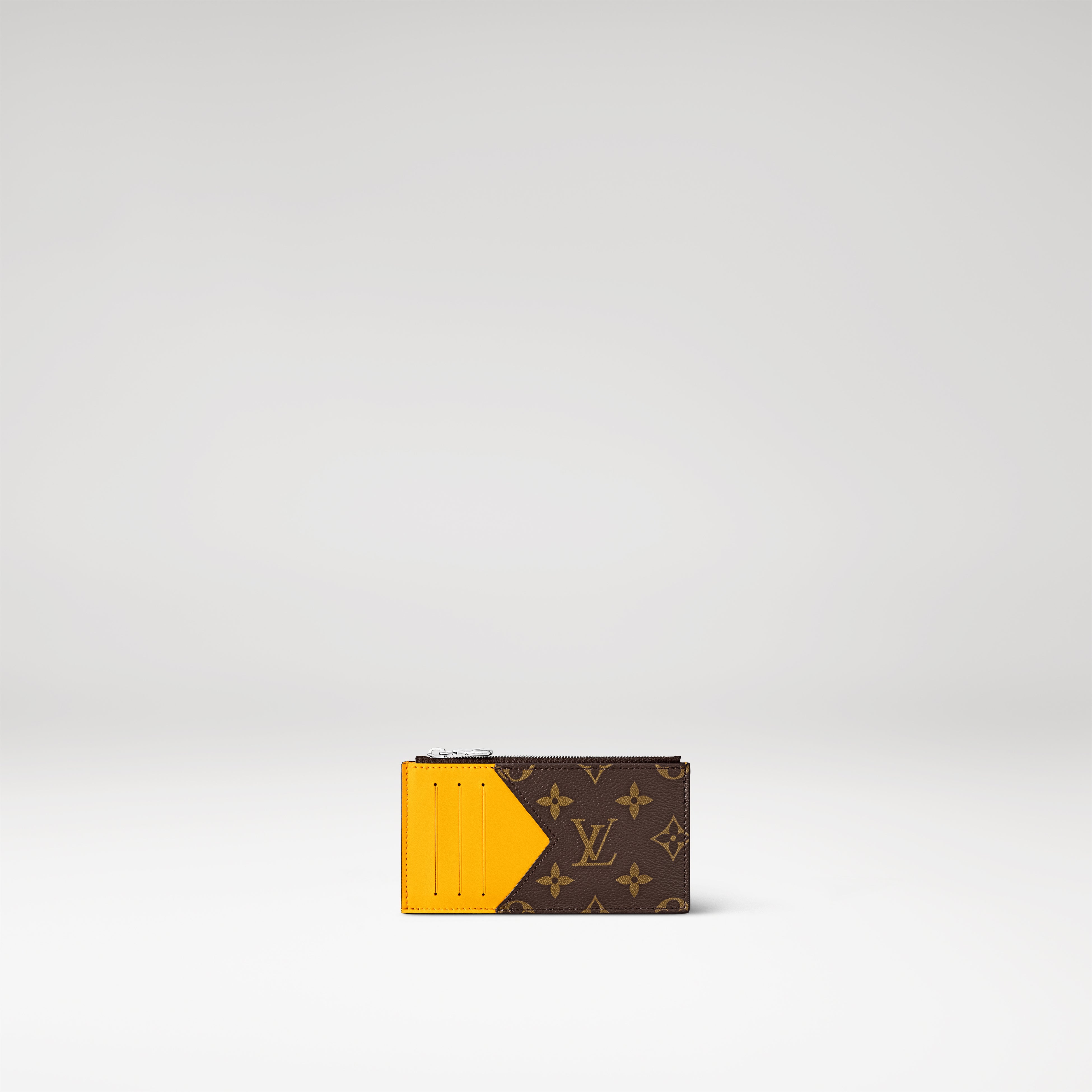 驚くほど機能的でコンパクトな「コインカード・ホルダー」。モノグラム・マカサー キャンバスに、鮮やかな色合いのトリヨンレザーのトリミングを施した端正な表情が魅力です。中央に配したコイン用のファスナー開閉式コンパートメント、紙幣や領収書用のフラットコンパートメントに加え、外側には4つのカードスロットをあしらいました。シルバーカラーのファスナー引き手にはLV イニシャルがアクセントをプラス。