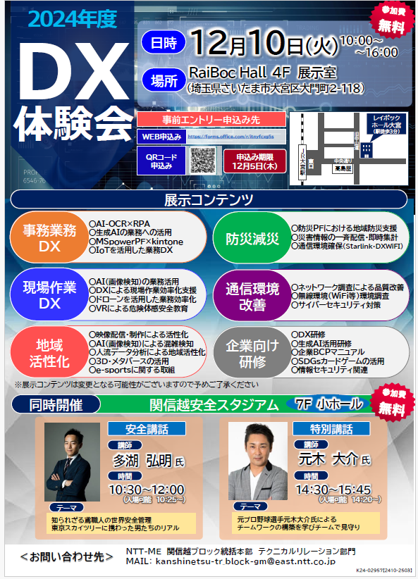 (1) 名称 :「2024年度 DX体験会」(主催:NTT東日本 埼玉事業部)