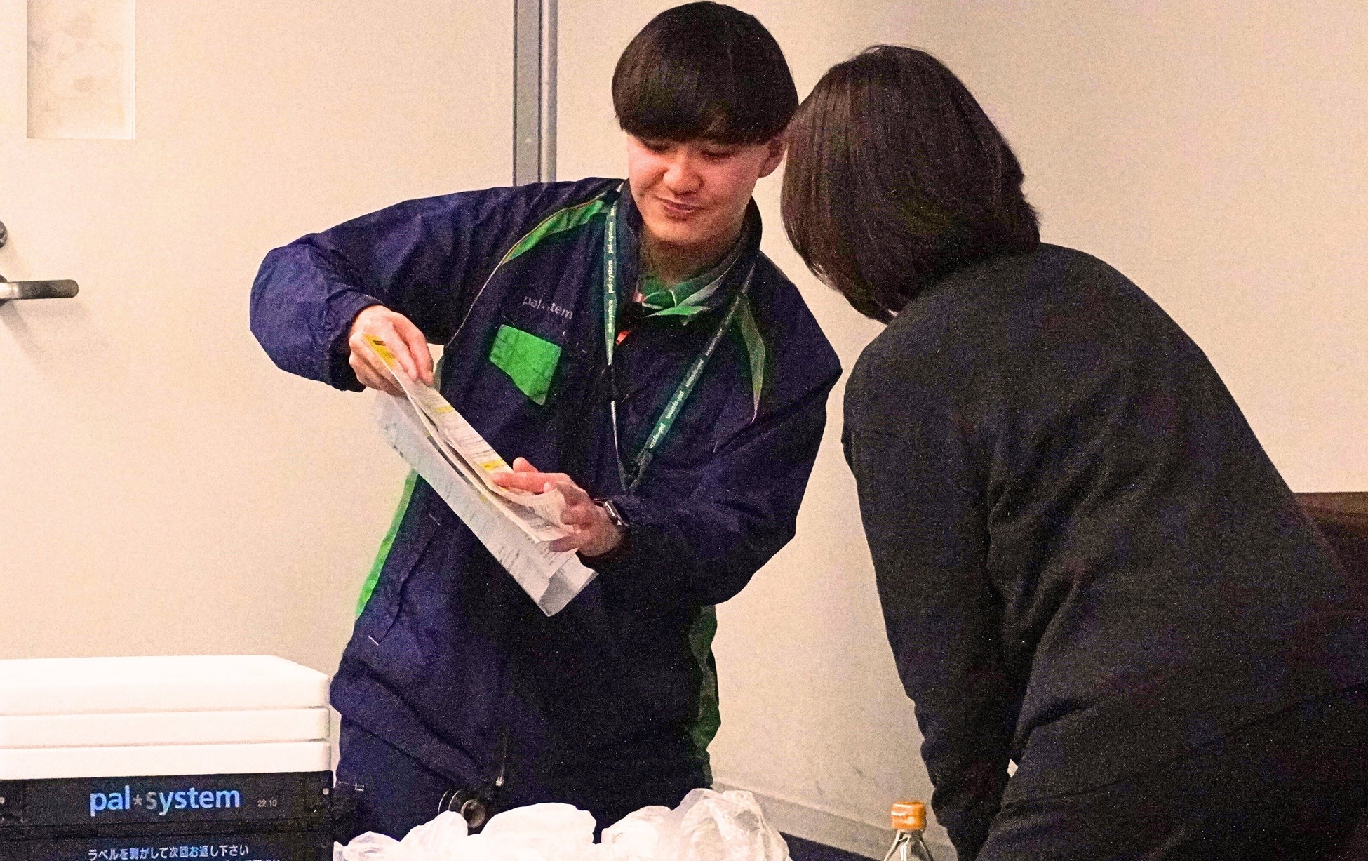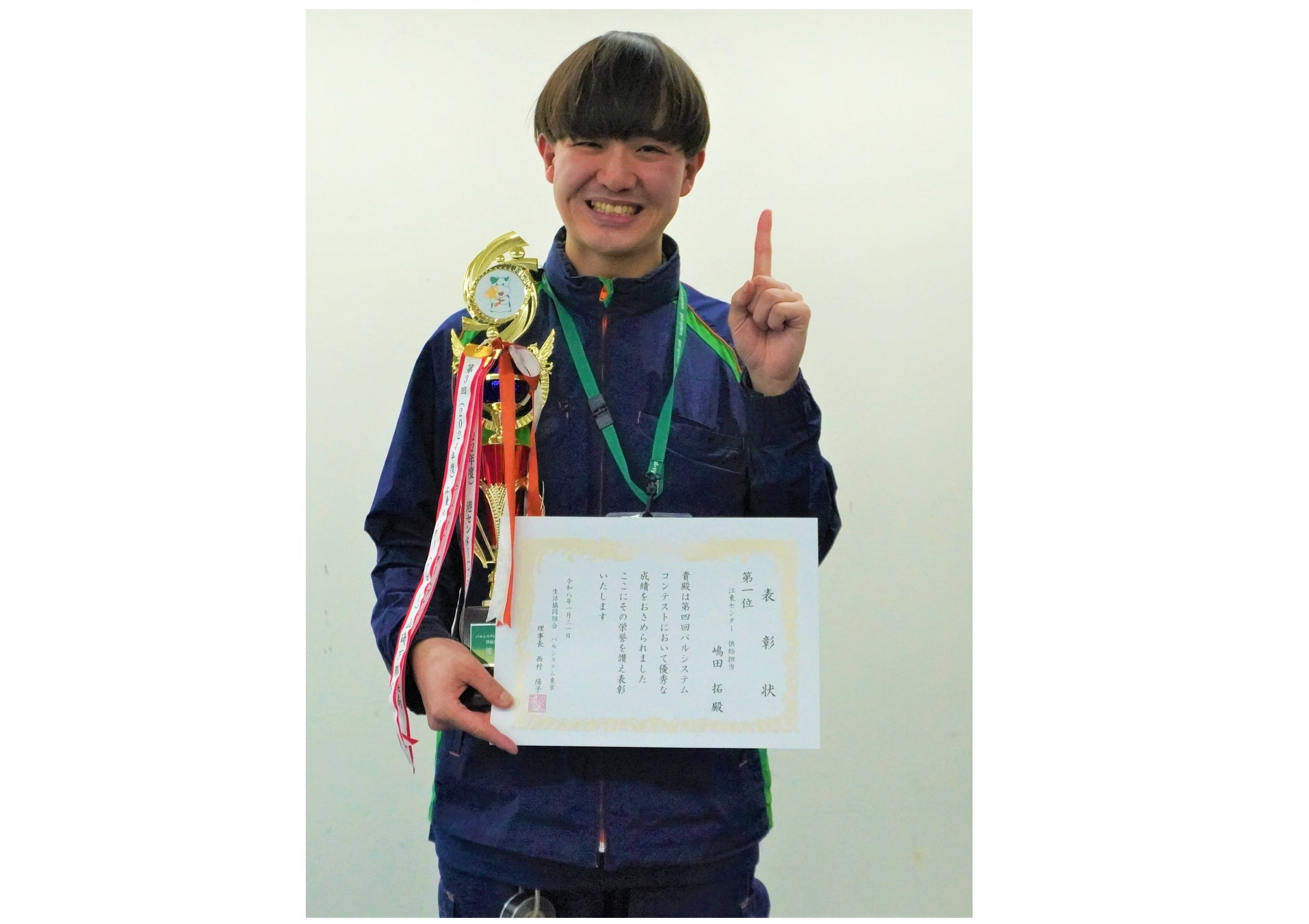 審査の結果、第1位の得点を獲得したのは、江東センターの嶋田拓職員です。普段から「またこの人に来てもらいたい」と思ってもらえる対応を心掛けているという嶋田職員は、利用者と相対できない場合も箱をきちんとそろえて置き配し、カバーをしっかりかけるなど細かな点に配慮していると話します。