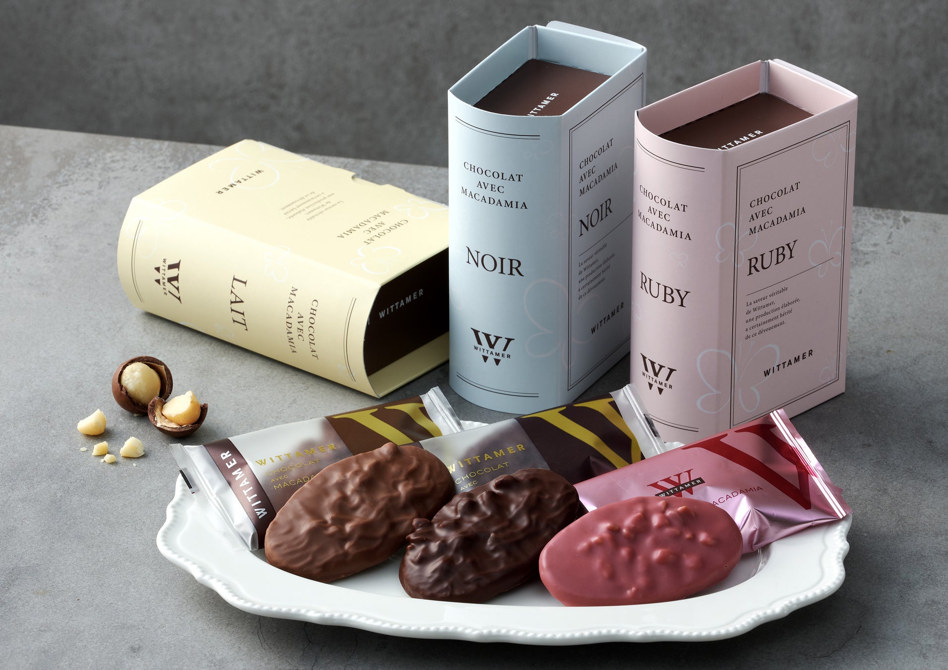 プチギフトとして毎年人気の「マカダミア・プティ・ブック」が今年も登場します。大切な人へ想いを届ける蝶を描いたブック型のパッケージに、マカダミア・ショコラを詰め合わせました。定番の「ミルク」と「ダーク」に加え、期間限定フレーバーの「ルビー」をご用意。贈り物はもちろん、ご自宅用やおやつとして、気になる味の食べ比べにもおすすめです。ナッツやチョコレートの風味を引き立てた3つの味わいをお楽しみください。