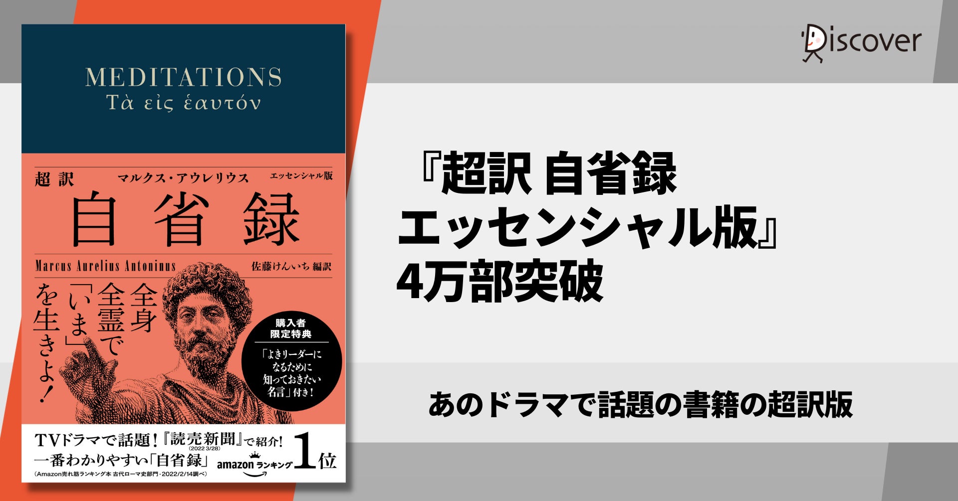 株式会社ディスカヴァー・トゥエンティワン(本社:東京都千代田区、取締役社長:谷口奈緒美)は『超訳 自省録 エッセンシャル版』(佐藤けんいち・編訳)を増刷し、4万部を突破しました。