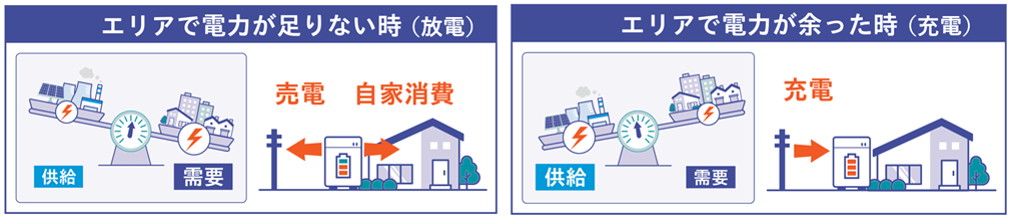 *2:電力は、安定供給の観点から電力需要量の合計と電力供給量の合計を一致させる必要があります。その調整を発電所などの供給側に頼るのではなく、家庭用燃料電池(エネファーム)、蓄電池、EVなどの分散型電源リソース(DER:Distributed Energy Resources)を活用してお客さまの電力需要量を制御し、需要と供給を調整する取り組みのこと。