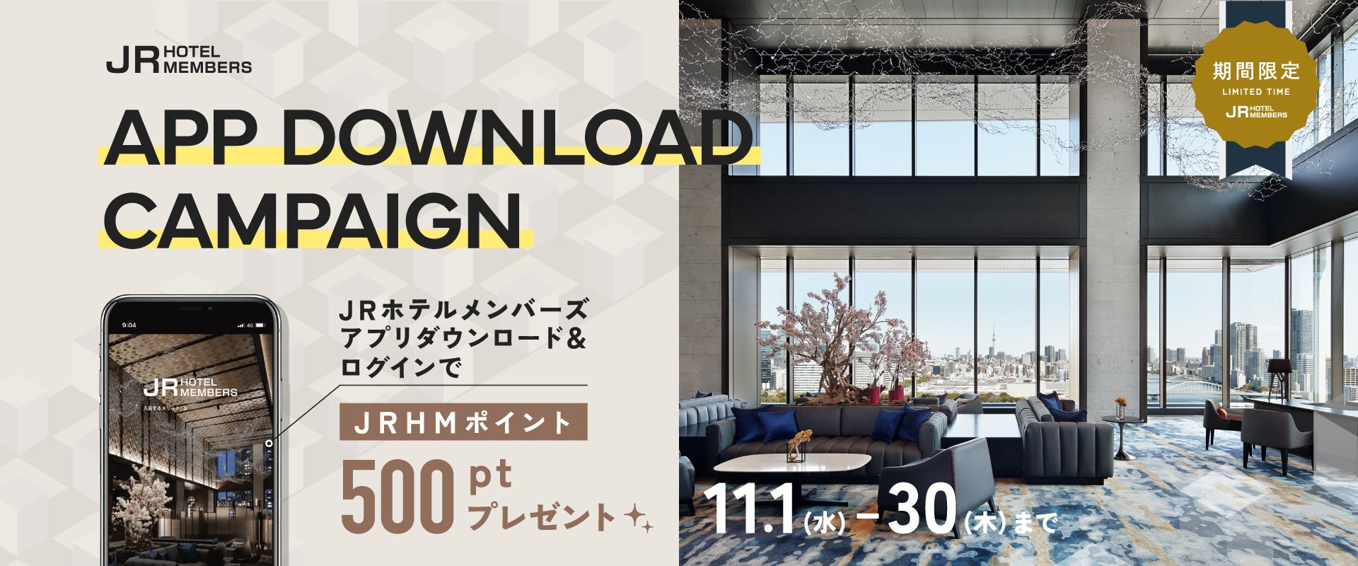 より快適に、より便利に。ホテルライフをサポート!JRホテルメンバーズ 公式アプリ ダウンロードキャンペーンを実施!期間:2023年11月1日~11月30日まで