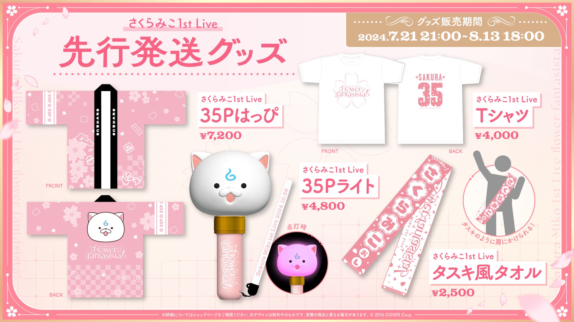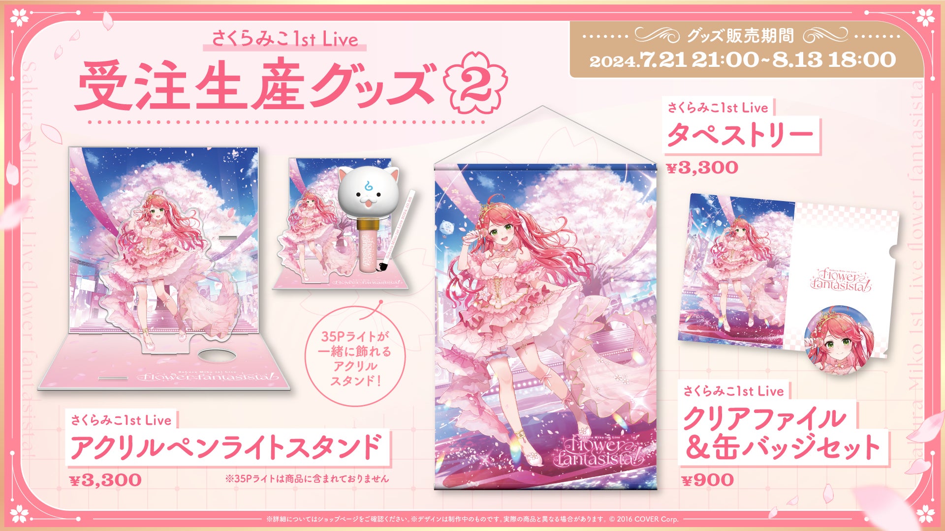 本公演開催に合わせ、本日7月21日(日)よりさくらみこ1st Live “flower fantasista!”ライブグッズヴィジュアルが解禁されました。