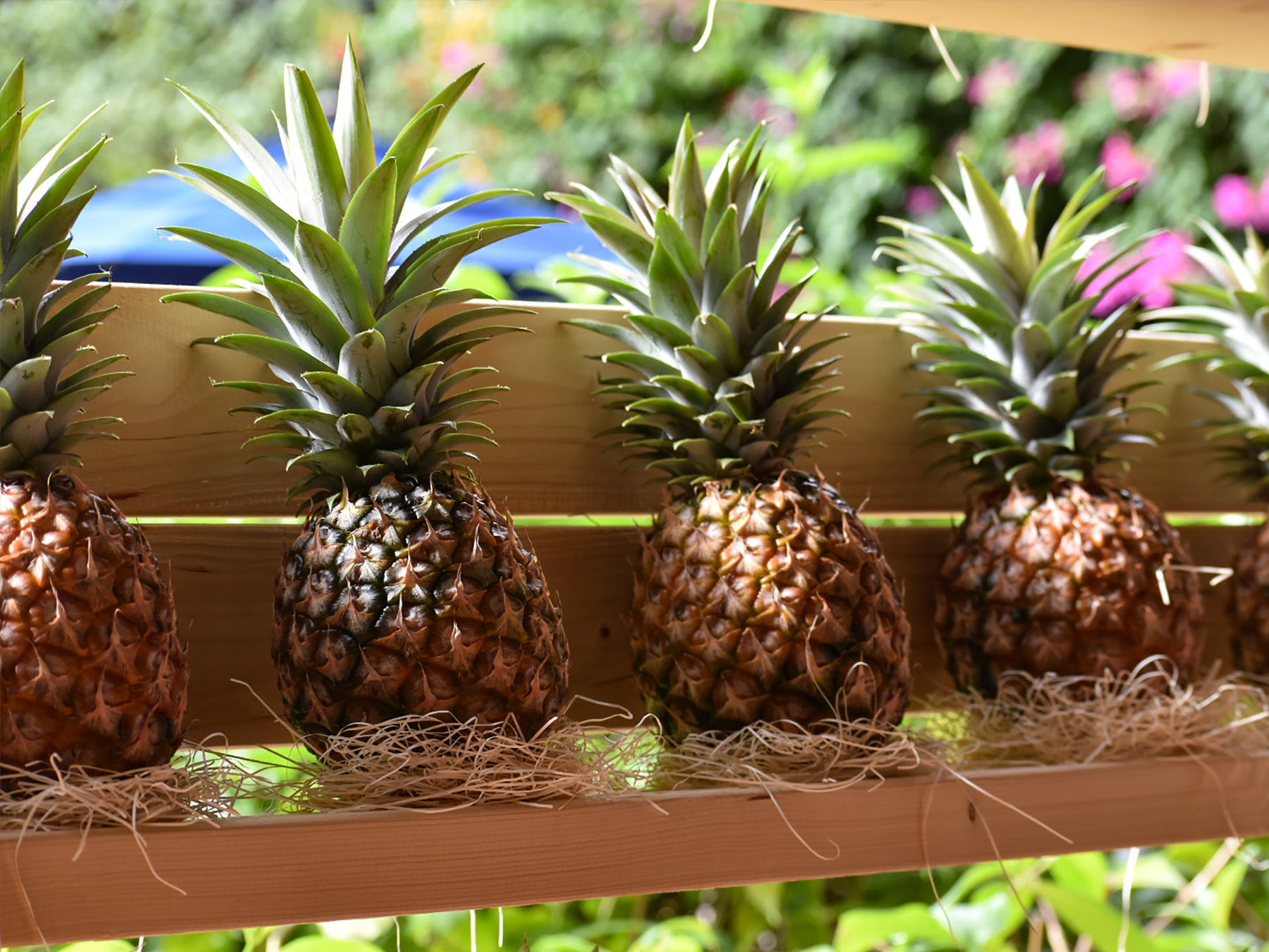 ピーチパインを栽培するには、“酸性”土壌が適していると言われ、産地が限られています。収穫シーズンは非常に短く、わずか2か月ほどです。そのため生産量が少なく、市場に出回ることも珍しい希少なパインです。また果物は一般的に輸送の期間を考慮して早い段階で収穫されます。しかし、パインは収穫後に追熟(*1)しないため、完熟の状態の一番美味しいピーチパインを食べることができるのは、生産地だからこそです。一足早い夏の西表島でピーチパインを味わい、その奥深い魅力を知ってほしいという思いから、西表島のパイン農家さん協力のもと、2021年より本イベントを開催しています。