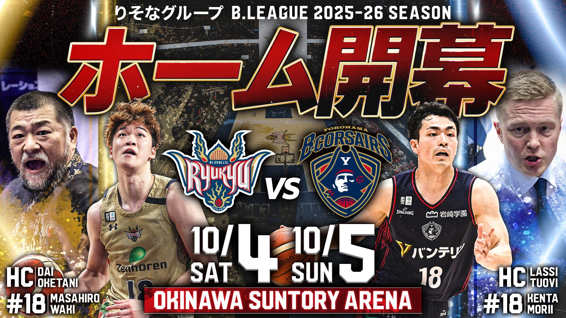Bリーグより発表がありました通り、「りそなグループ B.LEAGUE 2025-26シーズン」のホーム開幕戦の日程と対戦相手が決定いたしました。キングスのホーム開幕戦は10月4日(土),5日(日)、沖縄サントリーアリーナにて横浜ビー・コルセアーズと対戦します。